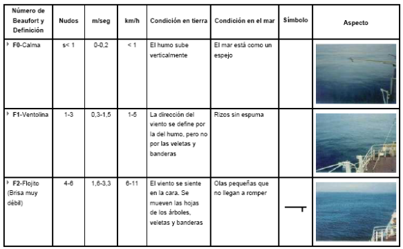 3.15 Escala Beaufort.- Es una escala para expresar la intensidad del viento, basada principalmente en el estado del mar y de sus olas. Consta de doce grados que definen la relación causa/efecto de las diversas intensidades del viento sobre la superficie del mar. Anexo 1.