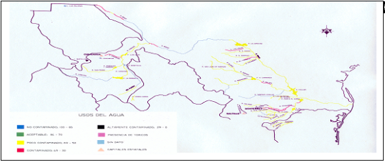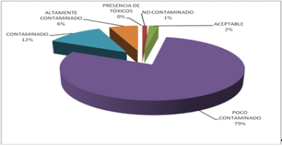 Sólo el 2% de sus aguas es aceptable, no hay presencia de tóxicos y no existen partes no contaminadas (ver figura 14).