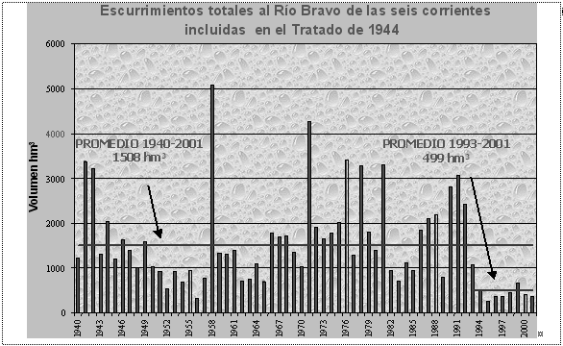 El balance hidrológico realizado señala una diferencia de 437.6 millones de metros cúbicos promedio anuales en la Subregión Hidrológica Seis Tributarios para completar al menos el valor mínimo anual de 431.721 millones de metros cúbicos promedio conforme al Tratado de 1944. De esta manera, los volúmenes aportados por la Subregión Hidrológica Seis Tributarios hacia la Subregión Hidrológica Medio Río Bravo, no son suficientes para cumplir con los volúmenes concesionados y con la parte segunda del inciso c del párrafo B del artículo 4 del Tratado sobre Aguas Internacionales celebrado entre los Estados Unidos Mexicanos y los Estados Unidos de América con fecha 3 de febrero de 1944.