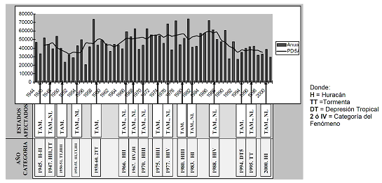 La presencia de los ciclones del Golfo de México, es determinante para la disponibilidad de volúmenes y la distribución interanual de los mismos.