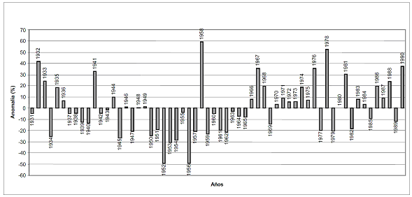 | Porcentaje de años cuya precipitación fue mayor que la media histórica | 19 % |
