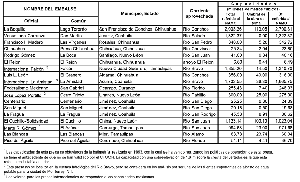 Tabla 2.- Principales embalses en la Región Hidrológica número 24 Bravo-Conchos