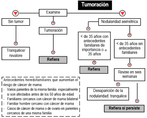 Un punto a destacar es que para que un programa de tamizaje de cáncer de mama funcione eficientemente, deben evitarse intervenciones innecesarias en caso de lesiones con características claramente benignas que, por su alta incidencia, interfieren con la atención ágil y costo-efectiva de los servicios de tamizaje. Por otro lado, las mujeres que acuden a la confirmación diagnóstica por sospecha de cáncer de mama tienen necesidades particulares ya que generan altos niveles de ansiedad y temor, por lo que no se recomienda mezclar los servicios de tamizaje de mujeres aparentemente sanas, con los de las mujeres sintomáticas bajo confirmación diagnóstica.