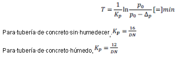 Para calcular el tiempo de prueba y un solo diámetro de tubería en un sistema, se utiliza la siguiente expresión: