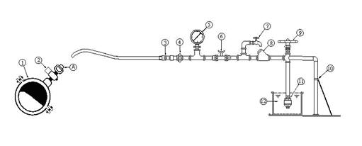 4) Si el descenso de la presión durante el tiempo de ensayo es de 0,007MPa (0,7bar) o menor se acepta la instalación. Si el descenso de presión es superior a 0,007MPa (0,7bar) se ha de inspeccionar la línea para determinar la causa de la excesiva pérdida de aire.