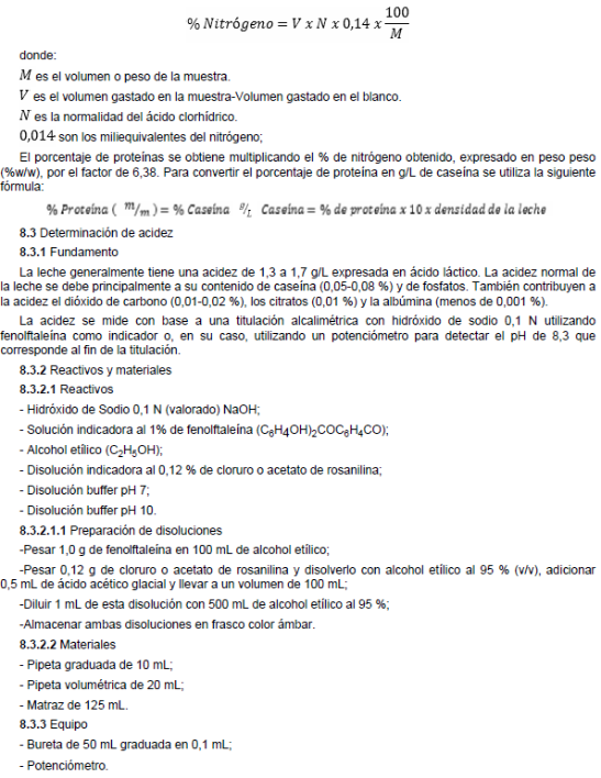 12.8 Moncada Jiménez, Alfonso y Beatriz Haydeé Pelayo Consuegra, "Análisis químico, microbiológico y fisicoquímico de la leche: calidad y contenido nutrimental" en: El libro blanco de la leche, Cámara Nacional de Industriales de la Leche, México, marzo de 2011.