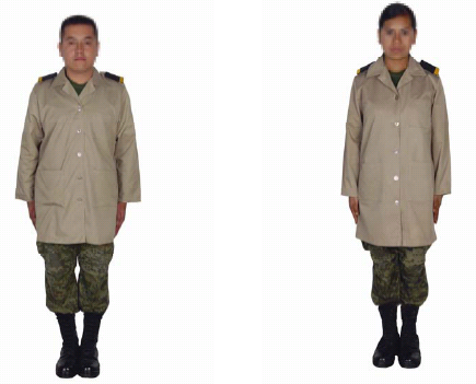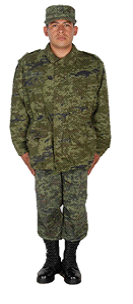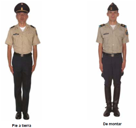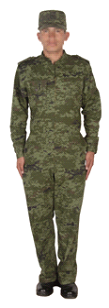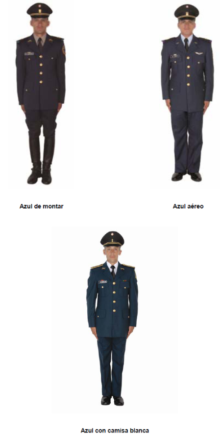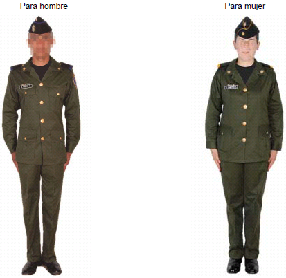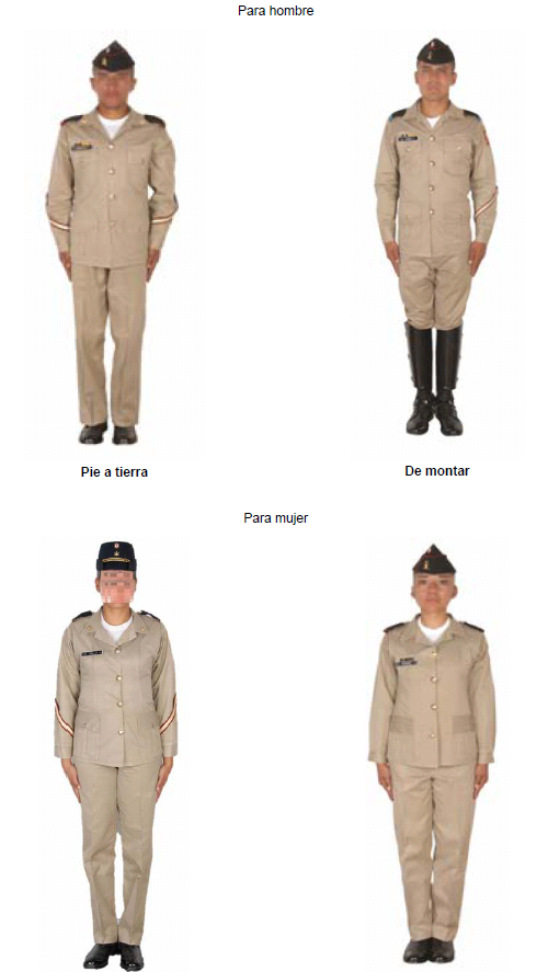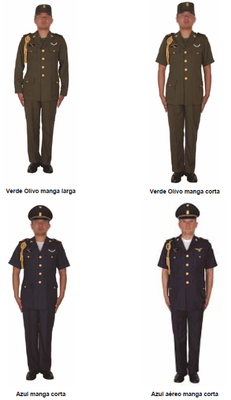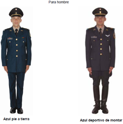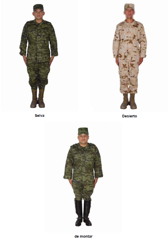 1. Uniforme de campaña. Utilizado por Generales, Jefes, Oficiales, Cadetes y Tropa, en actividades operativas, administrativas, ceremonias y desfiles, en tela camuflada modelos selva y desierto para el Ejército y azul aéreo para la Fuerza aérea, compuesto de: tocado, guerrera, pantalón y calzado, como sigue:
