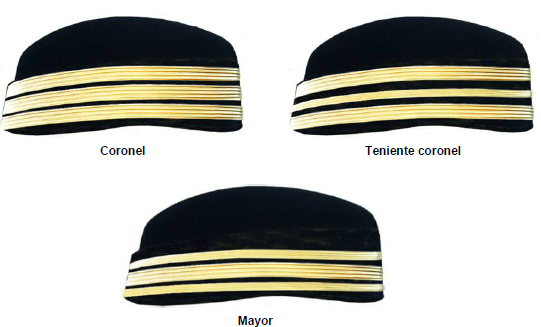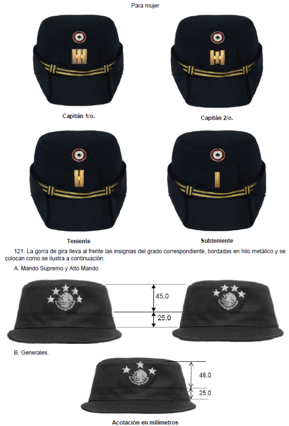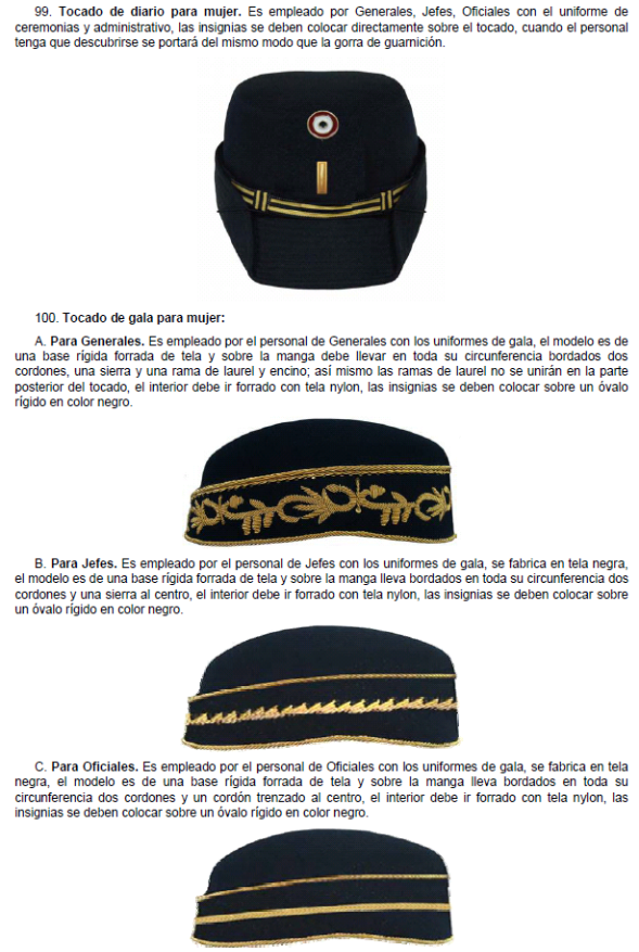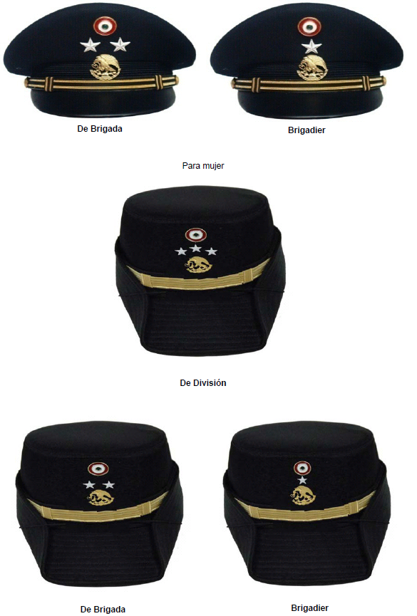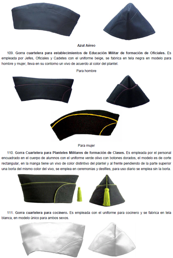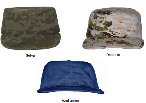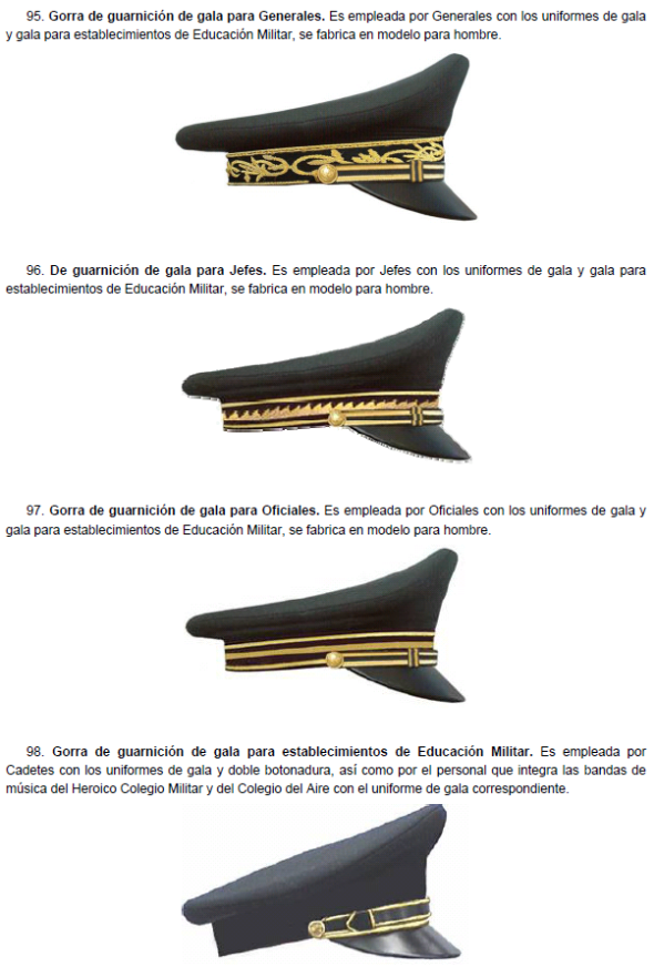 b. Gorras de guarnición, de gala, tocado femenino de gala, cuartelera para instituciones educativas militares y Música Militar: