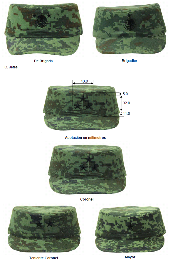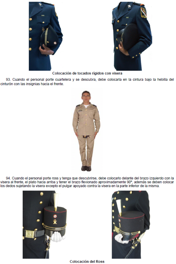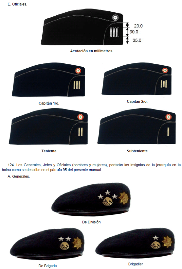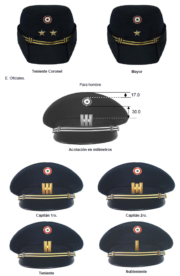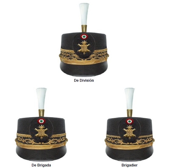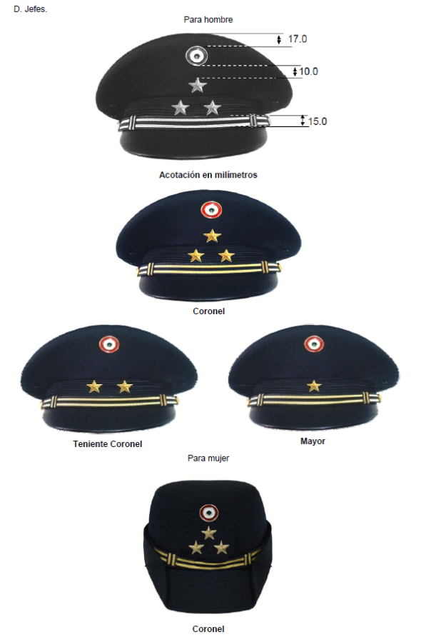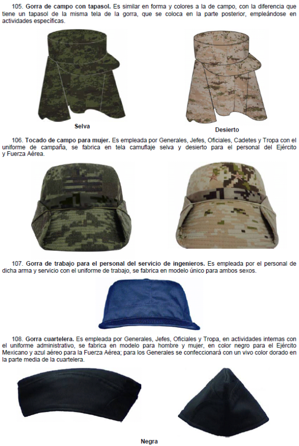 b. Gorras de guarnición, de gala, tocado femenino de gala, cuartelera para instituciones educativas militares y Música Militar: