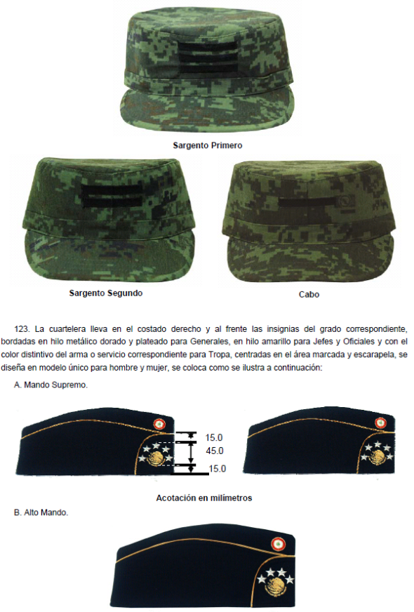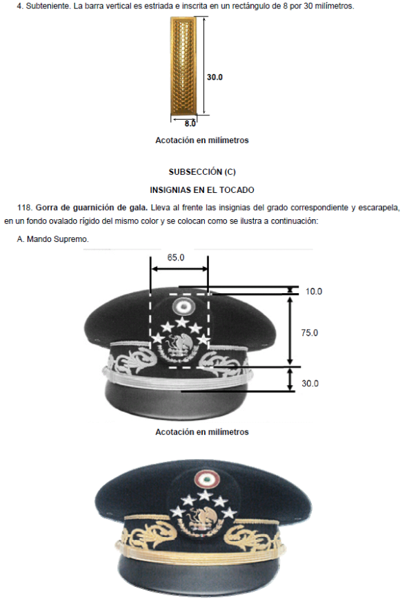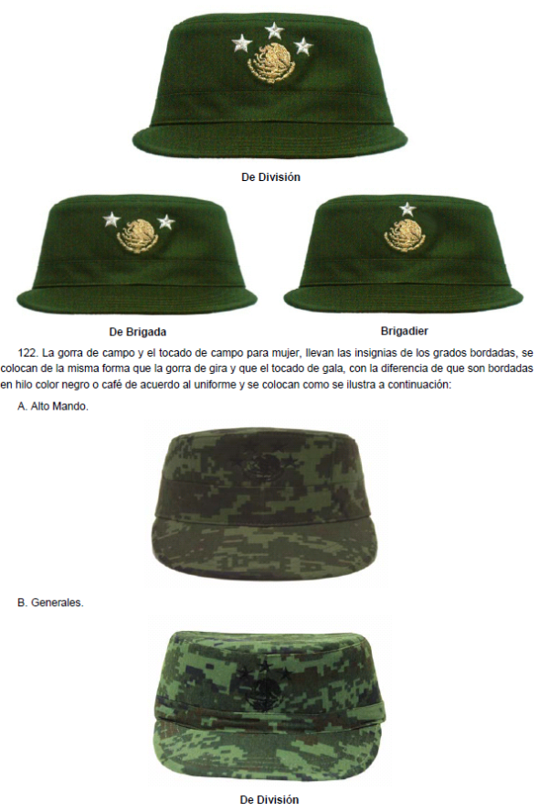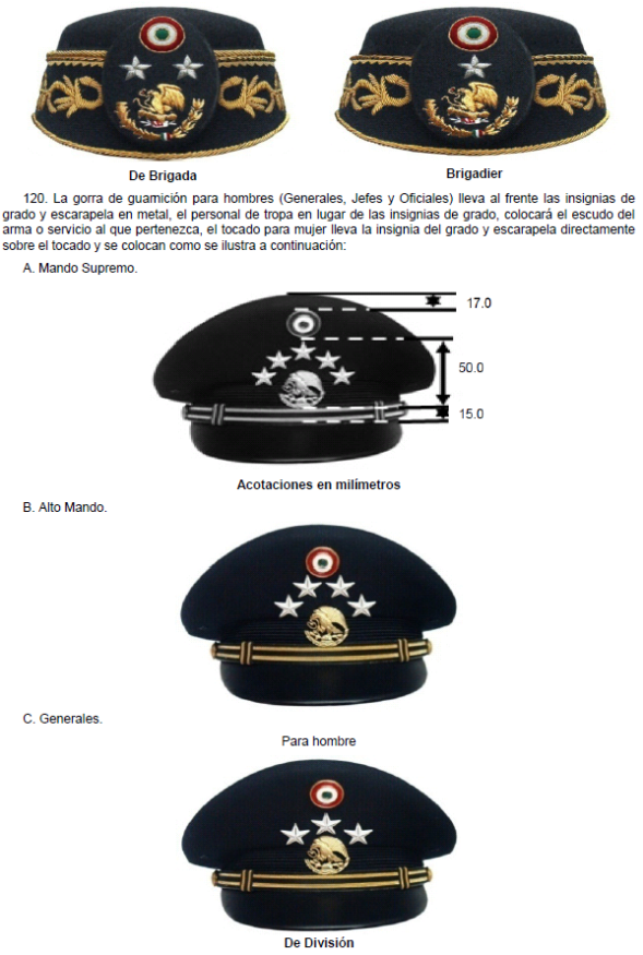 En consecuencia, todos los uniformes, divisas y equipo que utilice el personal militar, deberán estar contemplados en el presente Manual Gráfico o en directivas giradas por el Alto Mando; asimismo y debido al avance progresivo de las nuevas tecnologías, puede ser sujeto de modificaciones o adiciones, para lo cual será necesario contar con la aprobación del titular de la Secretaría de la Defensa Nacional.
