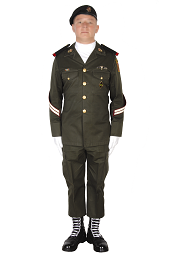 UNIFORME BEIGE Y VERDE OLIVO CON BOTONES DORADOS PARA PLANTELES MILITARES