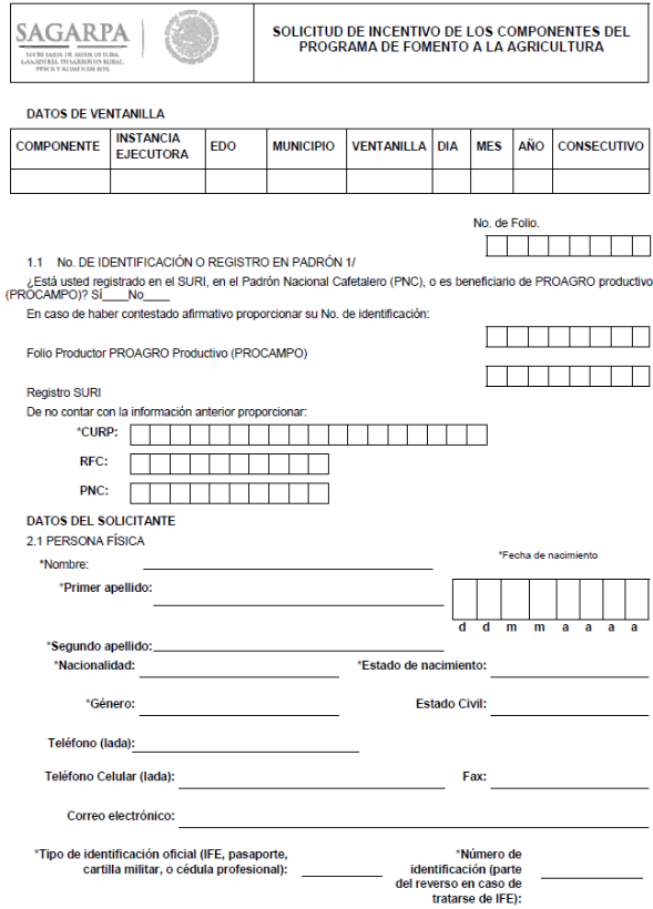 Anexo I. Solicitud de Incentivo de los Componentes del Programa de Fomento a la Agricultura