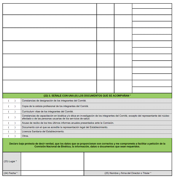 (24) Indicar la profesión y el número de Cédula Profesional del integrante del Comité, expedida por la Secretaría de Educación Pública. Se exceptúa el caso de la representación del núcleo afectado o de las personas usuarias de los servicios de salud, en cuyo caso se podrá señalar "NO APLICA".