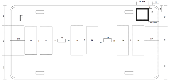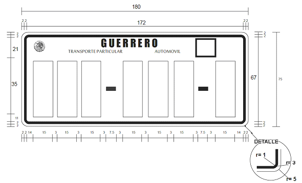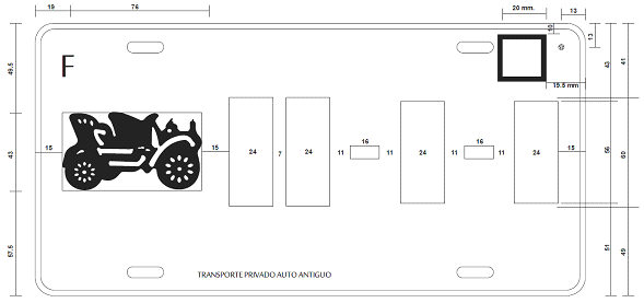 | Corporaciones policiacas y de vigilancia motocicleta | Figura 11 (cinco caracteres) |