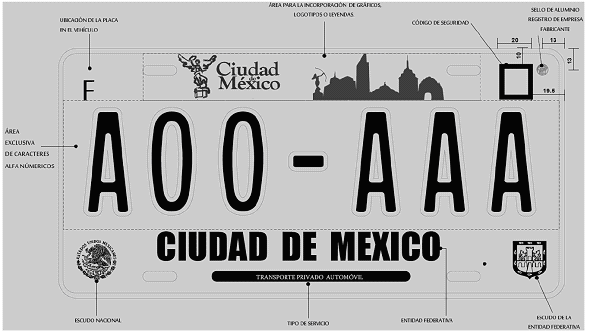 | Capacidades Diferentes Federal e Inspección de Vías Generales de Comunicación SCT. | Figuras 6 y 7 (cuatro caracteres) |