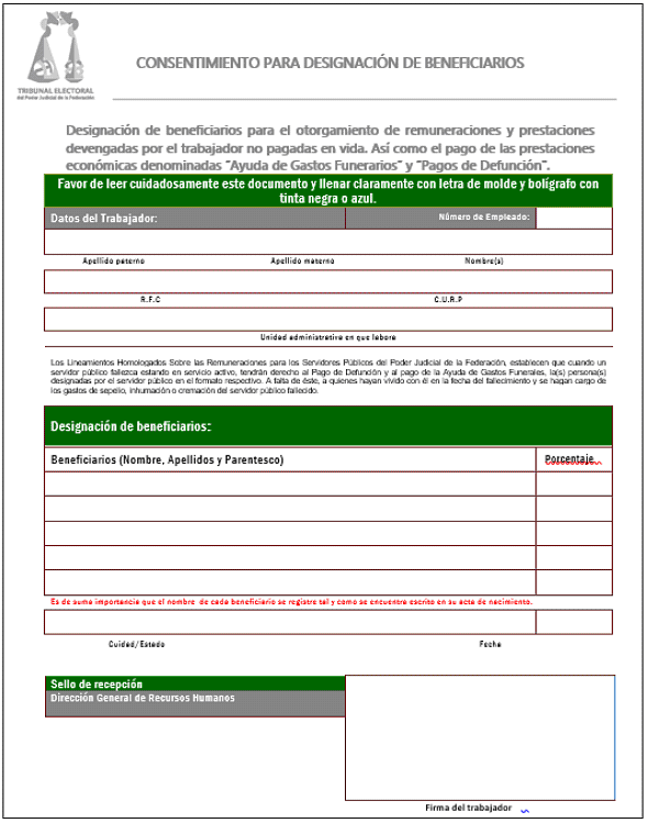 | RECURSOS HUMANOS: | Dirección General de Recursos Humanos del Tribunal Electoral del Poder Judicial de la Federación. |
