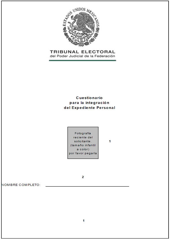 | 1.- | Fotografía: | El aspirante, debe pegar con goma adhesiva fotografía reciente. |