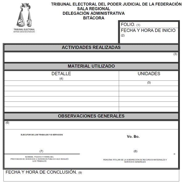 | 2. | Fecha y hora de inicio. | Anotar, el día, mes, año y hora en que se elabora la Bitácora. |