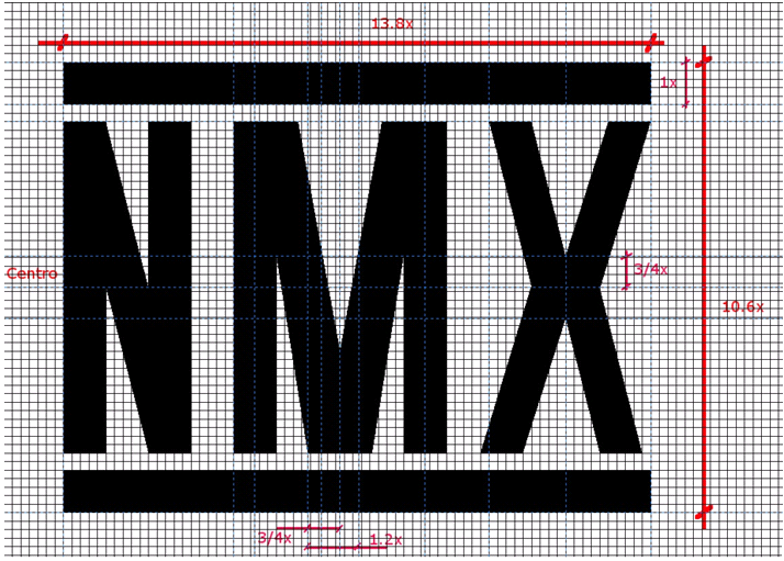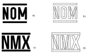 Deben conservarse las proporciones de las figuras para "NOM" y "NMX" respectivamente, siendo la dimensión vertical mínima de 2.5 mm.
