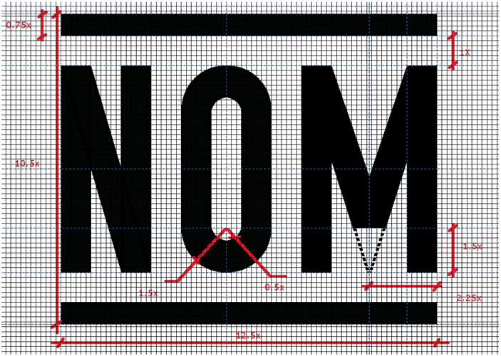 Las características de diseño de la Contraseña Oficial están dadas por las letras NOM y NMX según corresponda, y líneas (plecas), conforme lo indicado en la Figura A.1, de la presente Norma Oficial Mexicana.