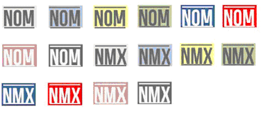 Las letras NOM y NMX, deben ser de color negro, gris o blanco; excepto para métodos de grabado no impresos como por ejemplo repujado, corte o grabado láser, estarcido, grabado en alto o bajo relieve, medios electrónicos, entre otras similares.