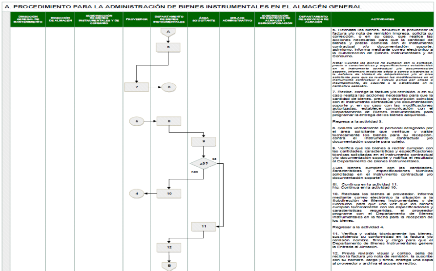 | Departamento de Bienes Instrumentales | 12. Recibe el Acta Administrativa y elabora el oficio para validación de la Subdirección de Bienes Instrumentales y de Consumo y firma de la Dirección de Almacén para informar a la Contraloría Interna, para los efectos conducentes. | Acta Administrativa Oficio |