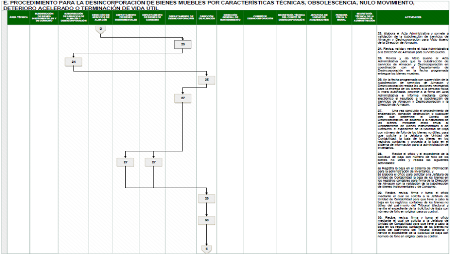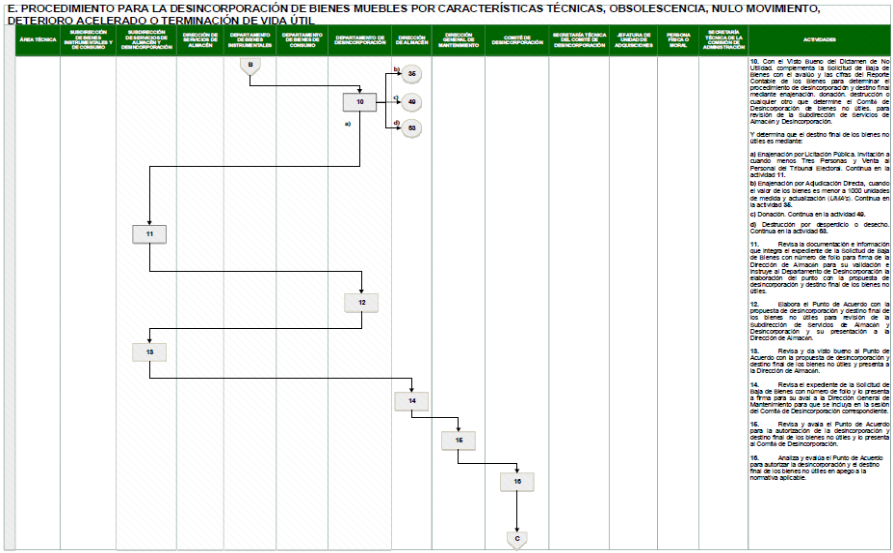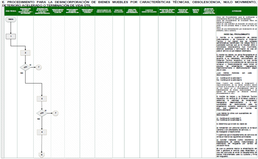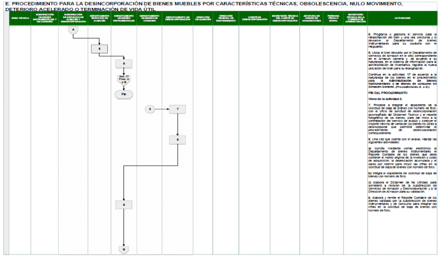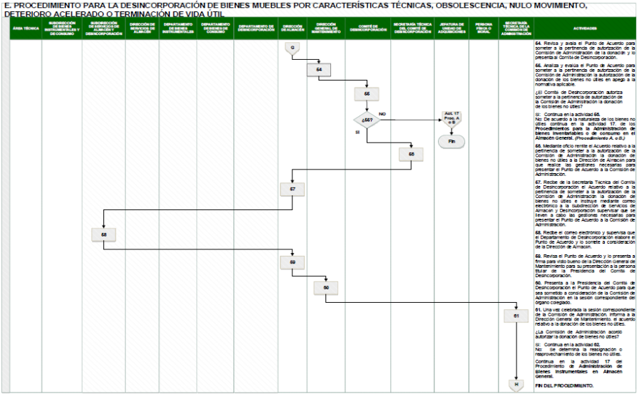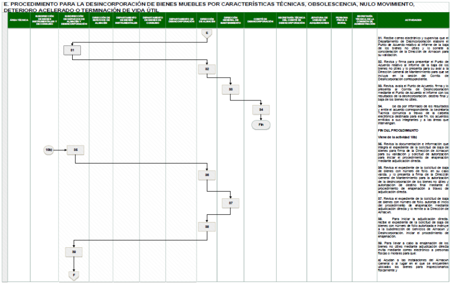 | Dirección de Almacén | 32. Revisa y firma para presentar el Punto de Acuerdo relativo al informe de la baja de los bienes no útiles y lo presenta para su aval a la Dirección General de Mantenimiento para que se incluya en la sesión del Comité de Desincorporación correspondiente. | Punto de Acuerdo |