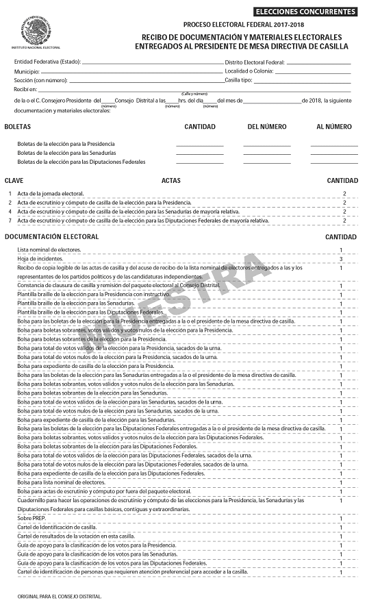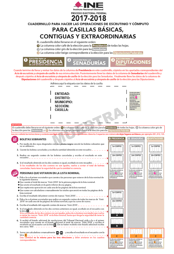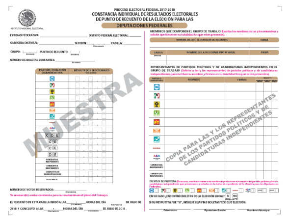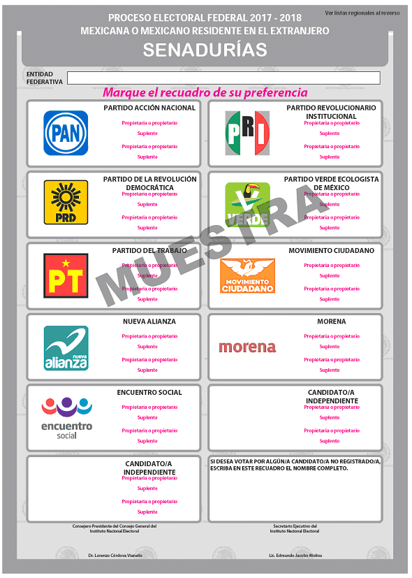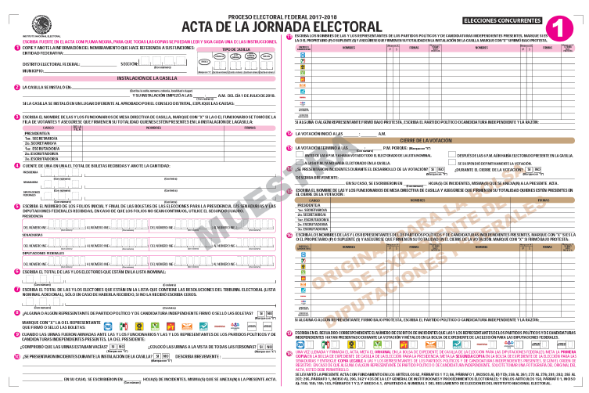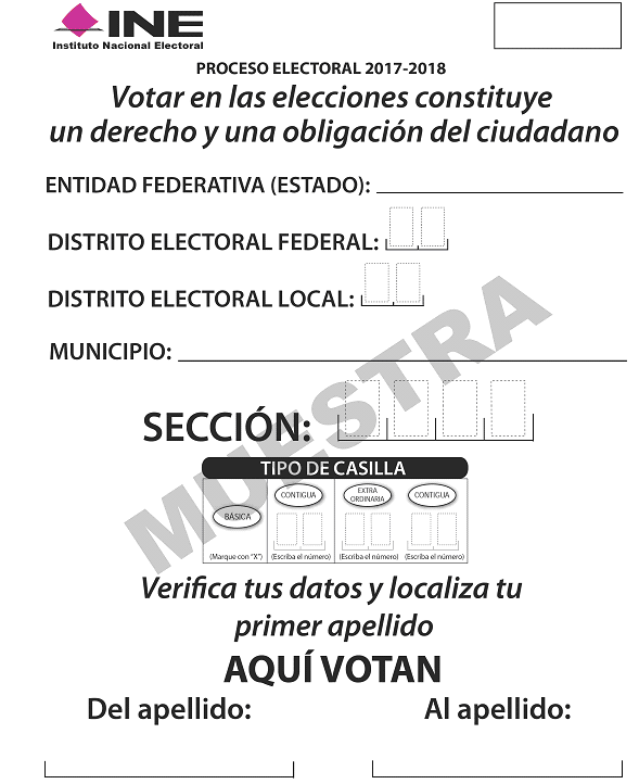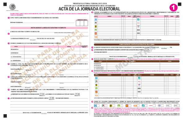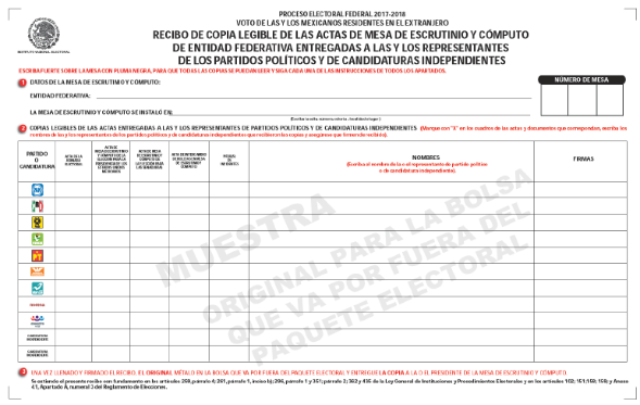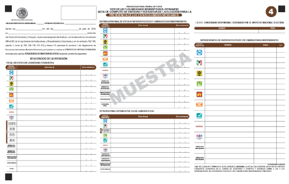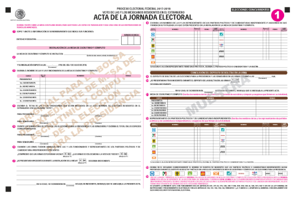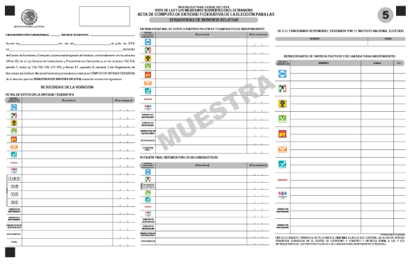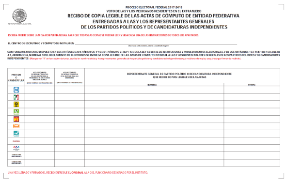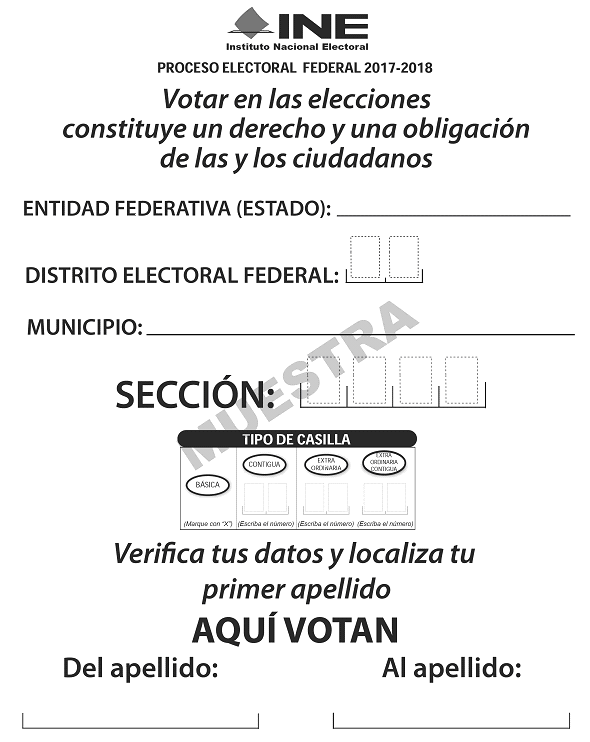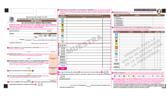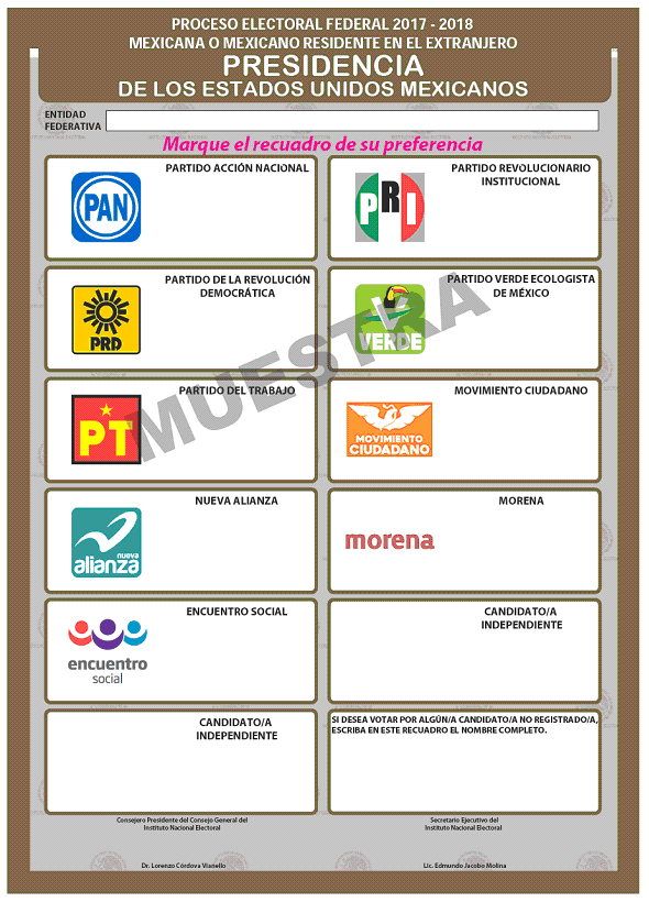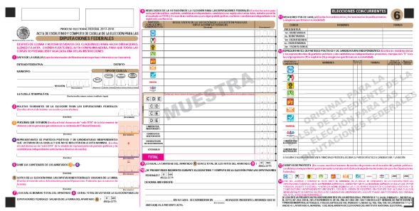 ACUERDO del Consejo General del Instituto Nacional Electoral por el que se aprueban el diseño y la impresión de la boleta y demás documentación electoral para el proceso electoral federal 2017-2018. (Continúa de la Segunda Sección).