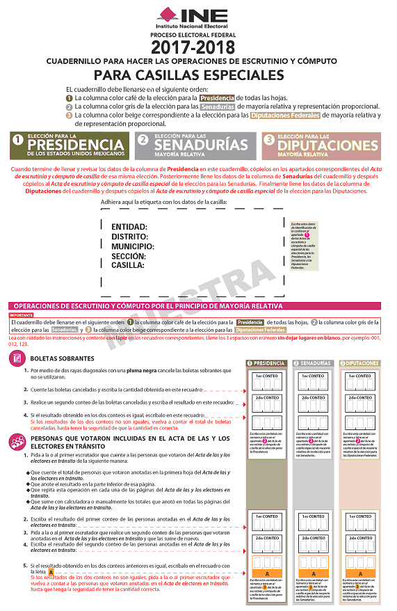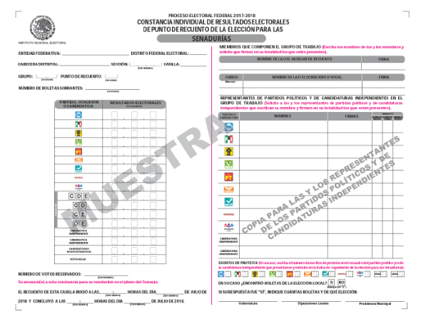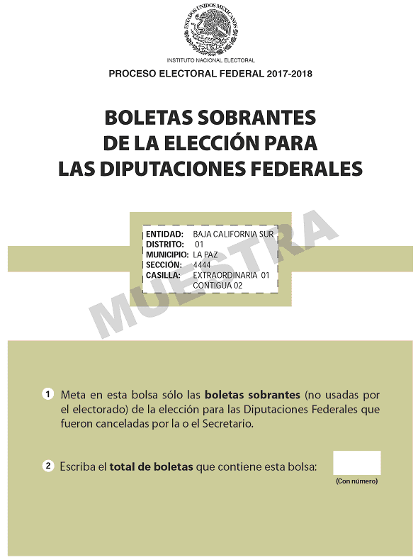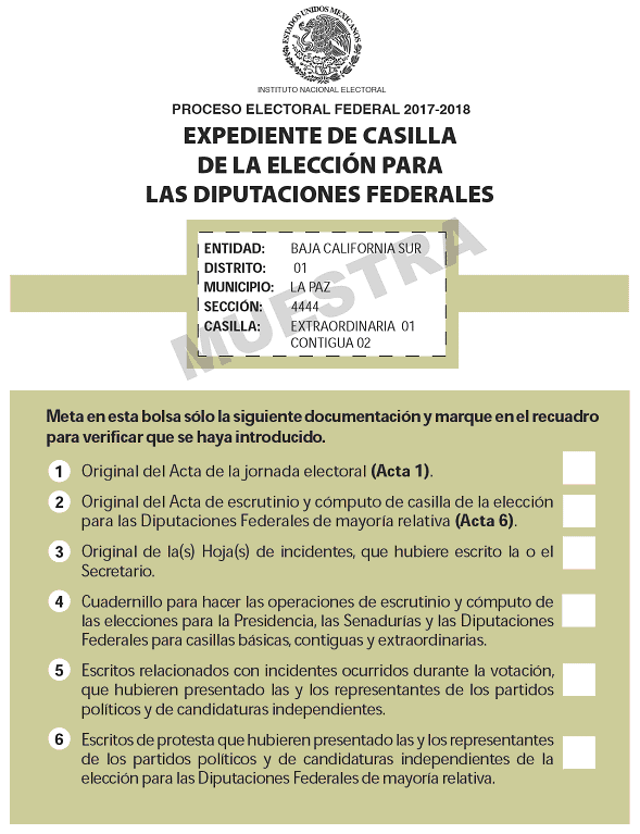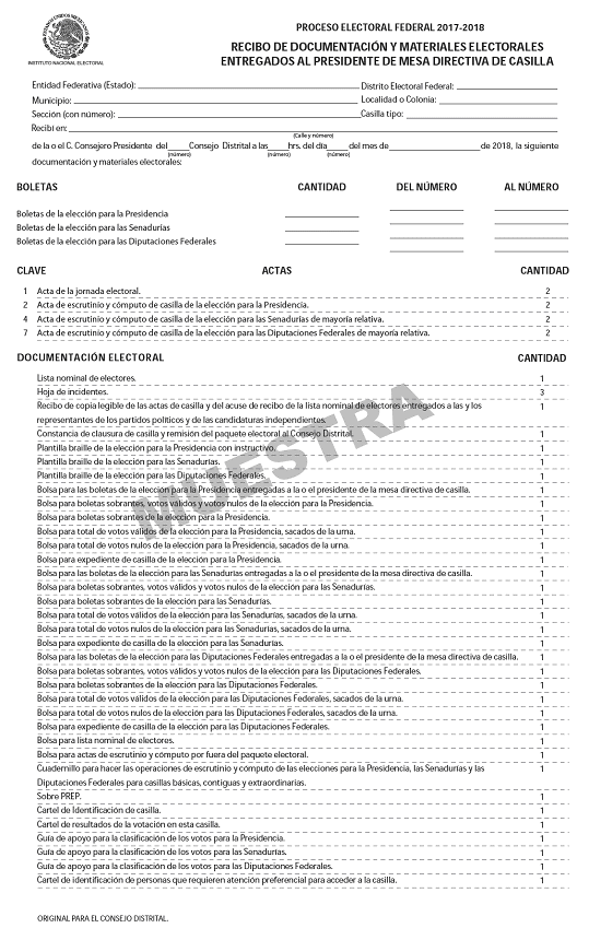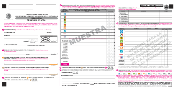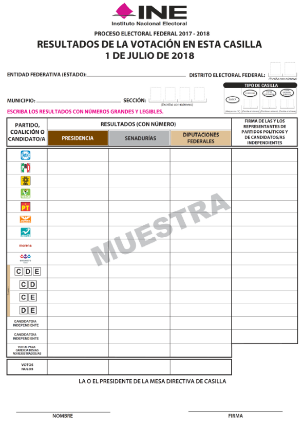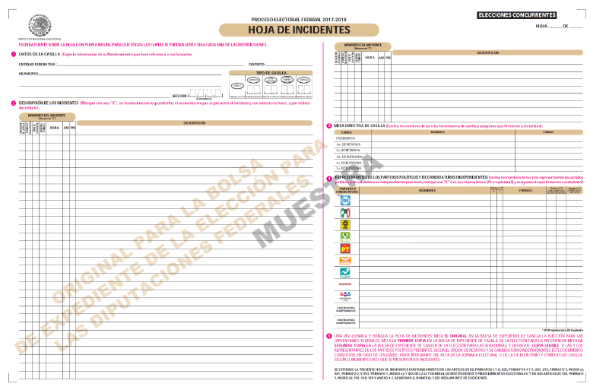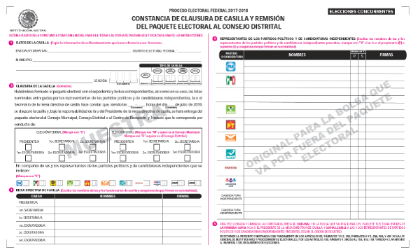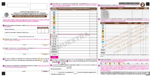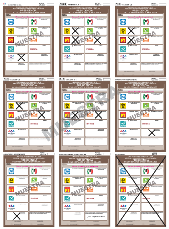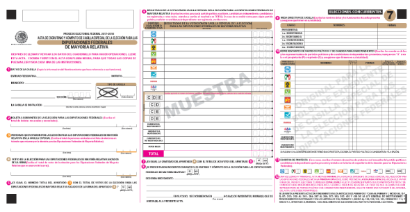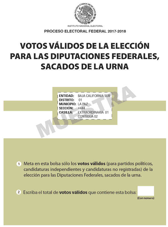 ACUERDO del Consejo General del Instituto Nacional Electoral por el que se aprueban el diseño y la impresión de la boleta y demás documentación electoral para el proceso electoral federal 2017-2018. (Continúa de la Segunda Sección).