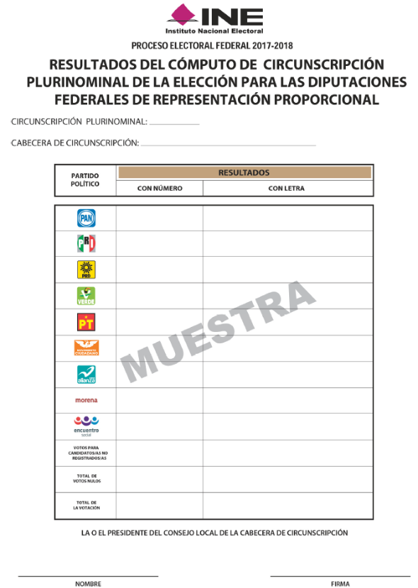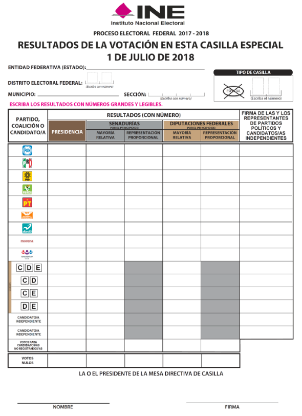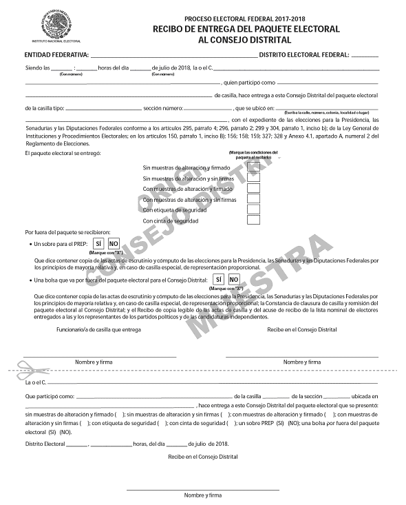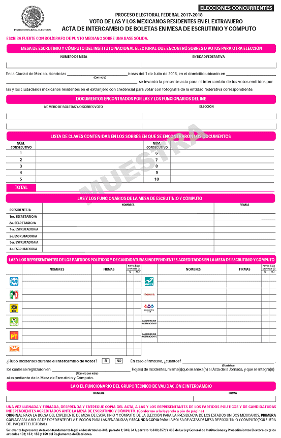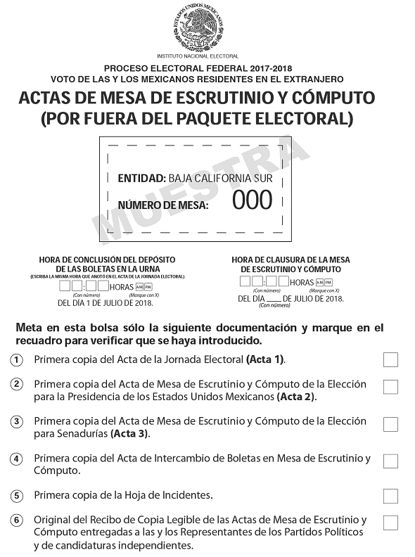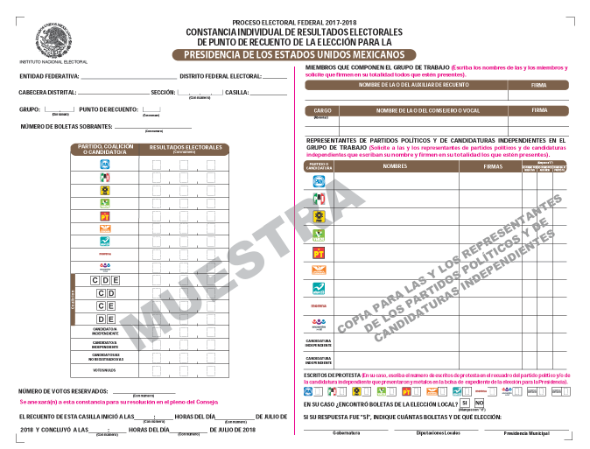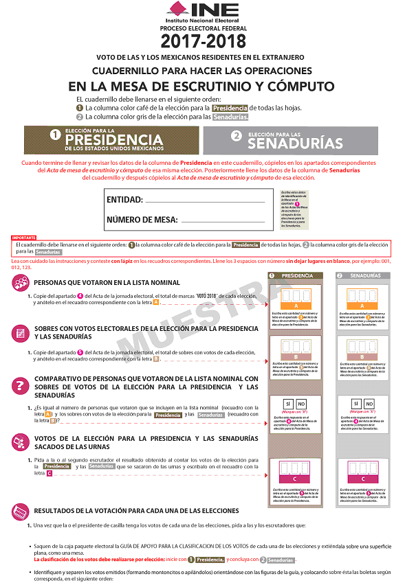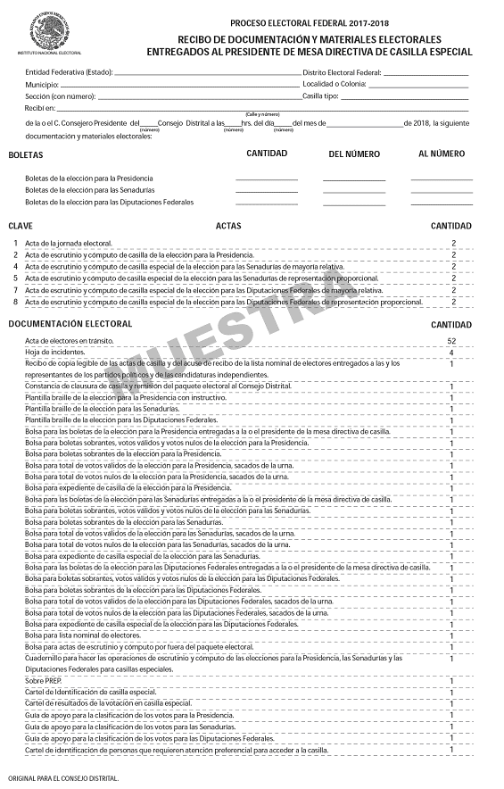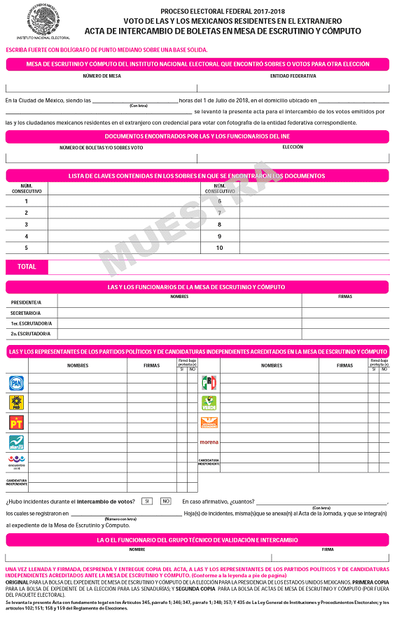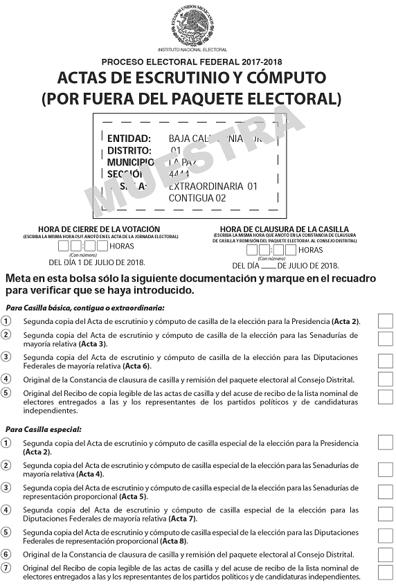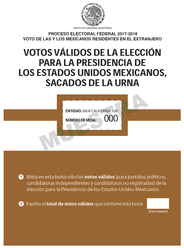 ACUERDO del Consejo General del Instituto Nacional Electoral por el que se aprueban el diseño y la impresión de la boleta y demás documentación electoral para el proceso electoral federal 2017-2018. (Continúa de la Segunda Sección).
