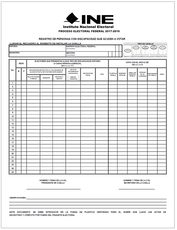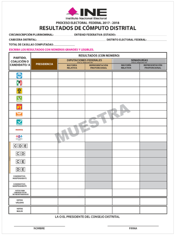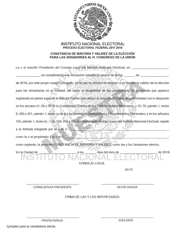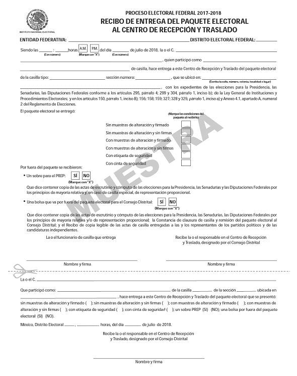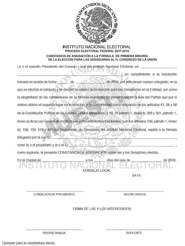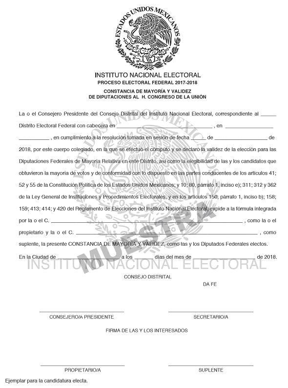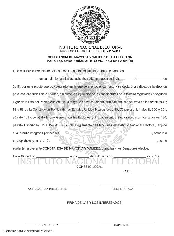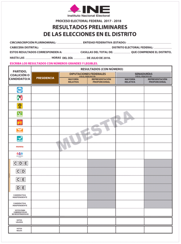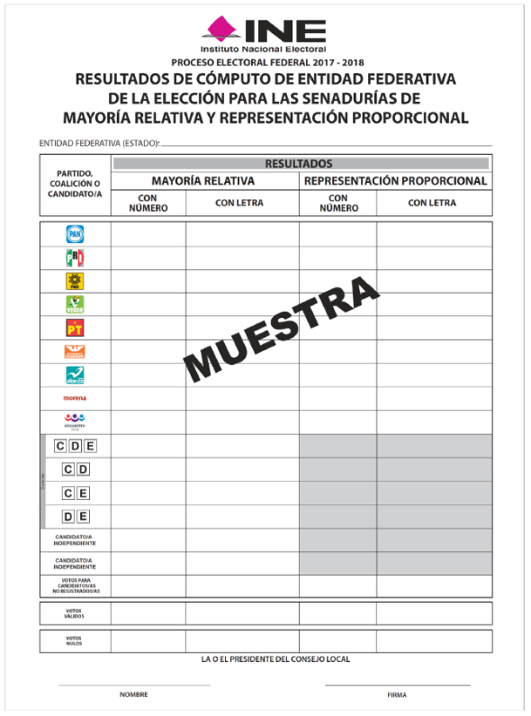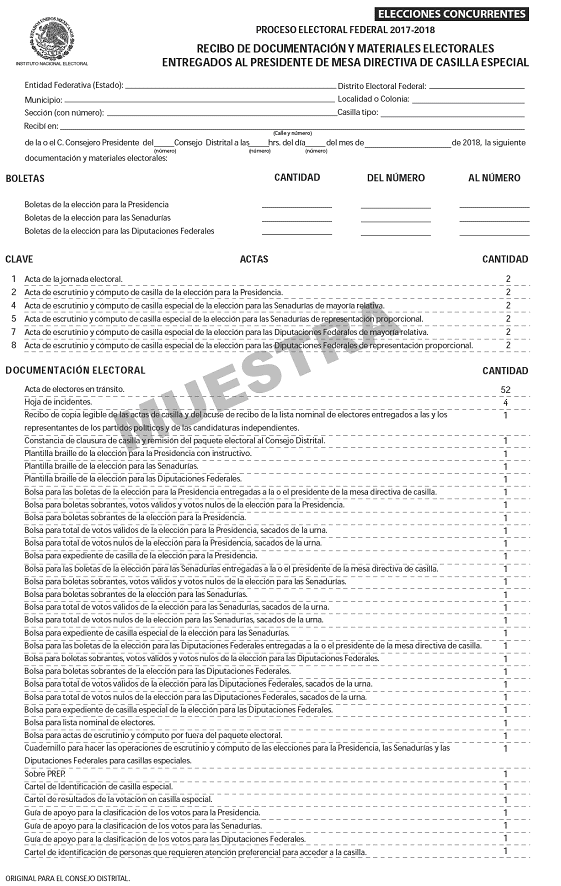 ACUERDO del Consejo General del Instituto Nacional Electoral por el que se aprueban el diseño y la impresión de la boleta y demás documentación electoral para el proceso electoral federal 2017-2018. (Continúa de la Segunda Sección).