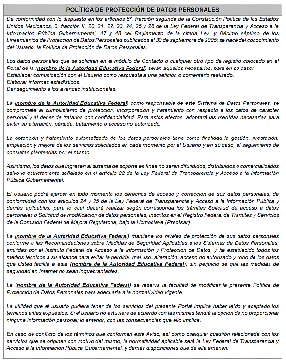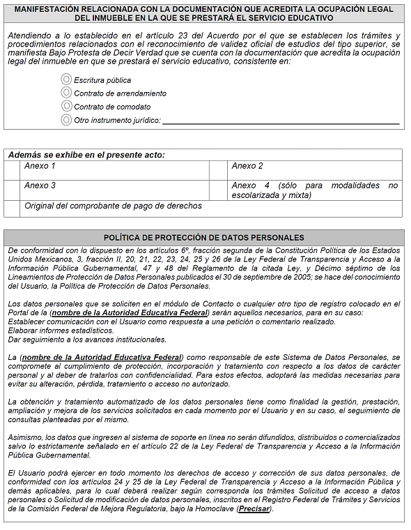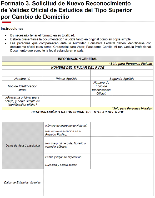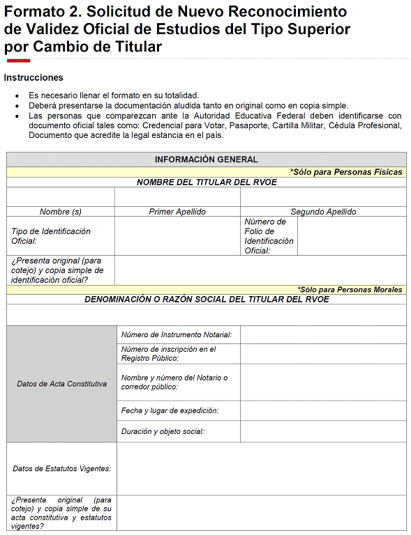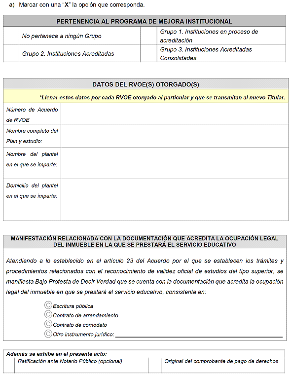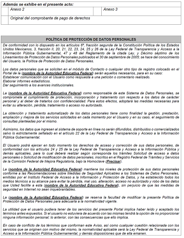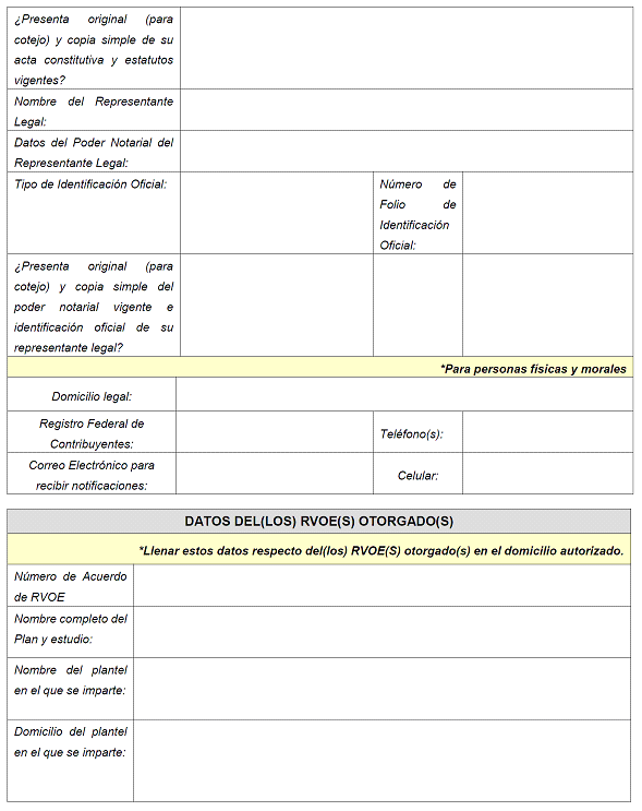| 15 | CCT | NO | Texto | 10 caracteres | Indicar la Clave del Centro de Trabajo (CCT) asignada a la Institución Particular titular del RVOE. |