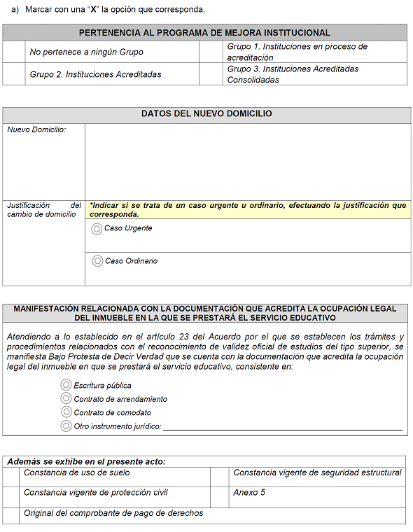 | 8 | Tipo de estudios que se imparten en el inmueble actualmente | SÍ | Texto | No aplica, se selecciona del catálogo | Seleccionar: Educación Básica ó Educación Media Superior ó Educación Superior u Otro. |