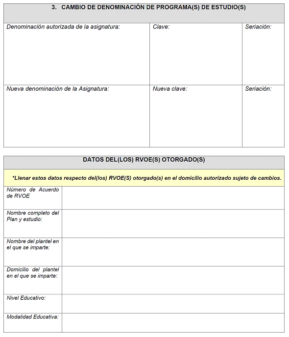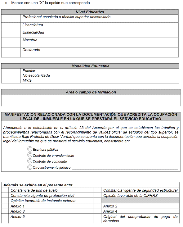 | 17 | Número de cubículos que serán destinados a la impartición del Plan y Programas de estudio objeto de RVOE | NO | Numérico | 3 dígitos | Ingresar el número de cubículos que serán destinados a la impartición del Plan y Programas de estudio objeto de RVOE. |