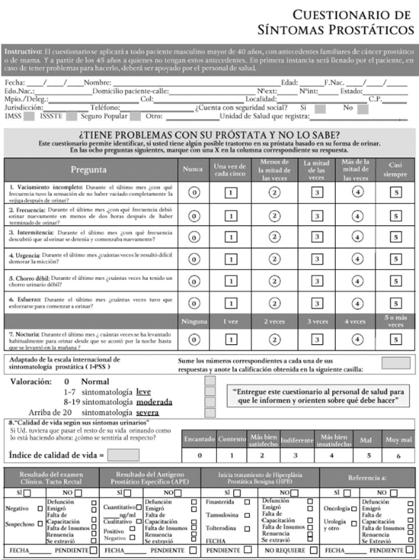 8. Detección integral en el primer nivel de atención de crecimiento prostático benigno (hiperplasia de la próstata)/cáncer de próstata (tumor maligno de próstata)