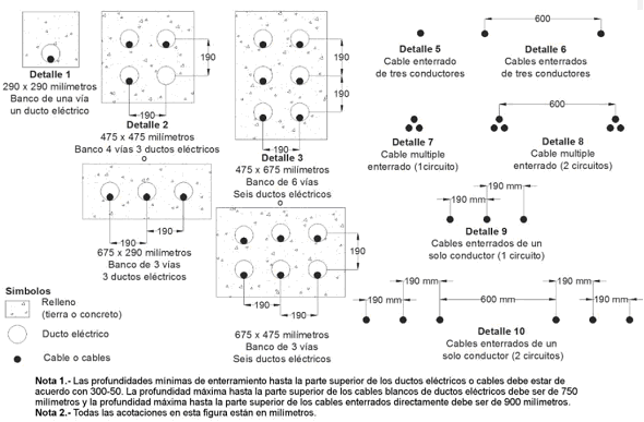 (1) Un conductor no menor al tamaño 85 mm2 (3/0 AWG) de cobre o de tamaño 250 kcmil de aluminio.