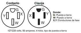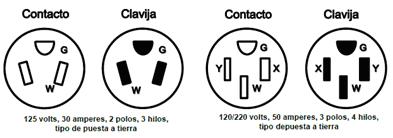 (4) Todos los contactos de 125 volts usados para potencia técnica de 60/120 volts deben tener una configuración única y estar identificados para el uso con esta clase de sistemas.