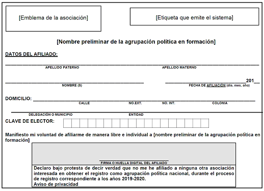 En razón de lo anterior, con el fin de garantizar el principio de certeza con el que debe actuar esta autoridad electoral, se estima necesario que las manifestaciones de afiliación contengan la fecha en la cual las personas manifiestan su voluntad de adherirse a la agrupación que se pretende constituir, la cual debe estar comprendida entre el 1º de febrero de 2019 y la fecha de presentación de la solicitud de registro. Por su parte, se requiere que los datos de las personas asentados en las citadas manifestaciones de afiliación correspondan con los datos que obran en el padrón electoral como forma de garantizar que los afiliados gozan en plenitud de sus derechos político-electorales.