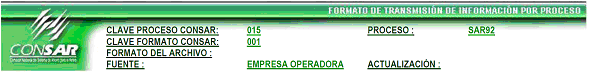 | 20 | SAR ISSSTE 92 | N | 11 | 2 | 215 | 227 | Monto en pesos liquidado de la subcuenta de SAR ISSSTE 92. 2 |