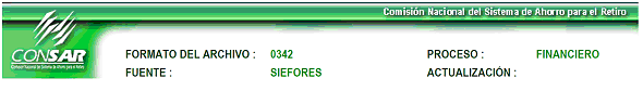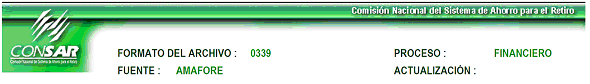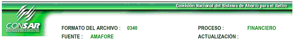 | 18 | Siefore | N | 2 | 0 | 187 | 188 | Sociedad de inversión básica, de acuerdo al Catálogo de Sociedades de Inbersión Basicas del Catálogo General vigente. 08= Siefore Para Origen de los resursos =07 (Banxico) se debe reportar 00. 1 |