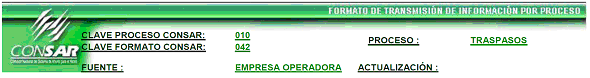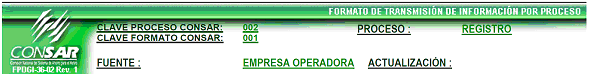 | 13 | Fecha de operación | F | 8 | 0 | 160 | 167 | Fecha de envío de la Solicitud de Disposición a Procesar para su certificación. 3 |