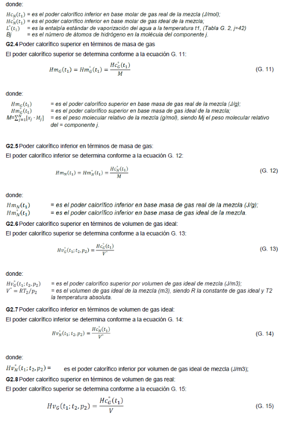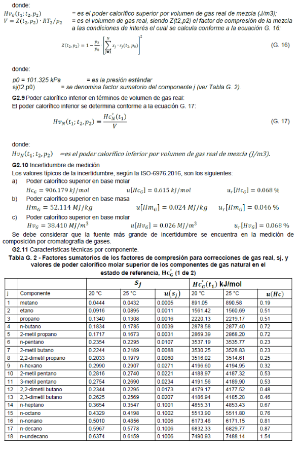 | Nota 1: Todos los valores de la Tabla G. 3 han sido tomados de la norma ISO 6976:2016. |