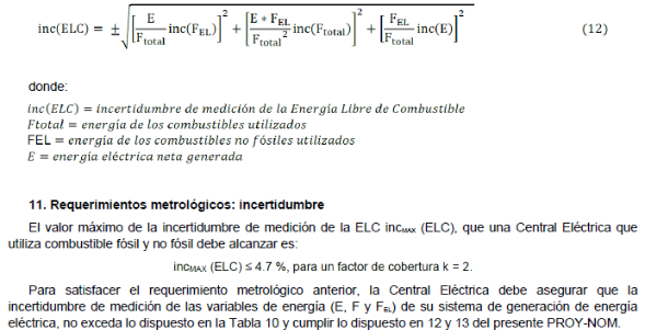 VIGÉSIMO PRIMERO. Que el Proyecto de Norma Oficial Mexicana PROY-NOM-017-CRE-2018, contiene los requerimientos metrológicos necesarios para la medición de las variables necesarias para la determinación de la Energía Libre de Combustible de los procesos de generación de energía eléctrica que se definen en las Disposiciones de eficiencia y ELC, mismos que se describen en el Considerando Decimocuarto del presente Acuerdo.
