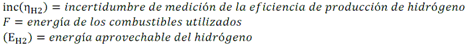 | Energía aprovechable del hidrógeno producido | EH2 |