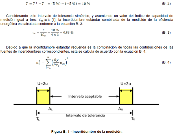 | Métodos de prueba estandarizados | Equipos necesarios. | Personal | Componentes de incertidumbre | Incertidumbre expandida poder calorífico inferior. |
