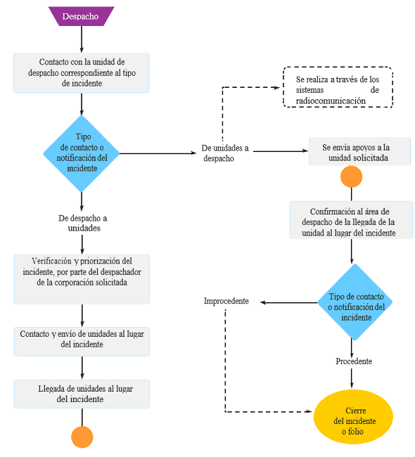 e. Operación: Estableciendo los protocolos estandarizados, así como las características y/o especificaciones del proceso de recepción, despacho y atención de las llamadas de emergencia.