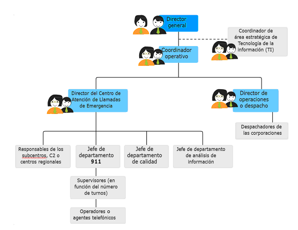 a. Organización: Estableciendo las condiciones de organización operativa que deben estar presentes en los Centros de Atención de Llamadas de Emergencia (CALLE), para la mejor coordinación con las corporaciones e instancias responsables de la atención de las emergencias.