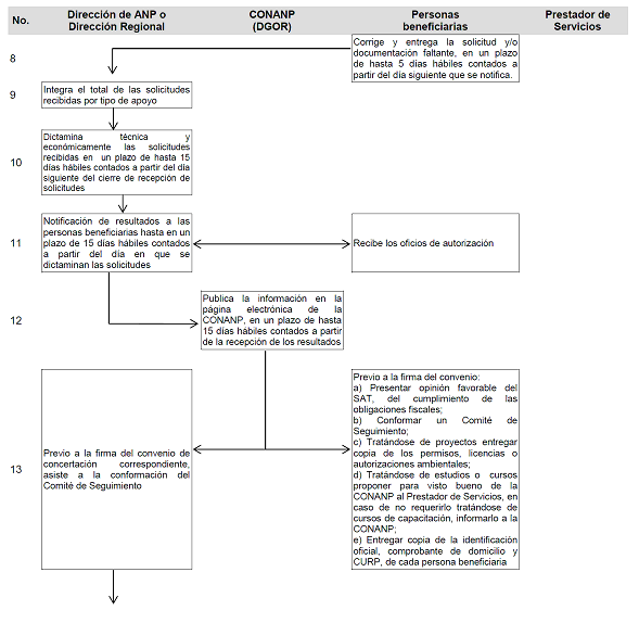 6. La CONANP revisará que las solicitudes y la documentación anexa, se ajusten a los requisitos, términos y condiciones previstos en las Reglas de Operación del PROCODES y, en su caso, notificará por escrito al interesado de cualquier omisión o irregularidad que se presente con motivo de dicha revisión, en un plazo máximo de cinco días hábiles contados a partir de la recepción de la respectiva solicitud, a fin de que ésta sea integrada correctamente, previniéndole que, en caso de no cumplir con el requerimiento dentro de un plazo de cinco días hábiles contados a partir del día siguiente que se notifique al solicitante, se le tendrá por desechada su solicitud.
