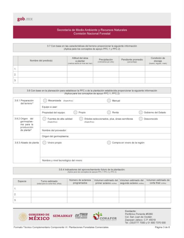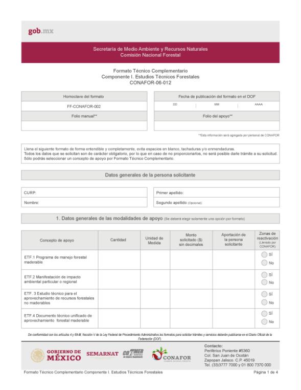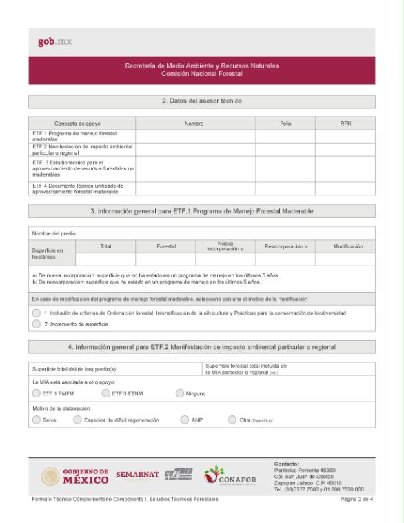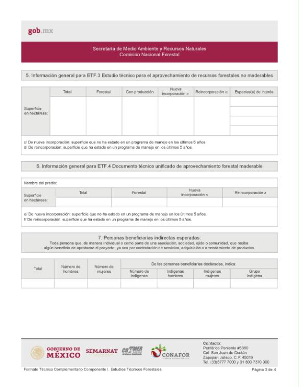 | ETF.3 Estudio técnico para el aprovechamiento de recursos forestales no maderables | Única | 250,000 | I, II y III | 1 | 15 | Registro Forestal Nacional |
