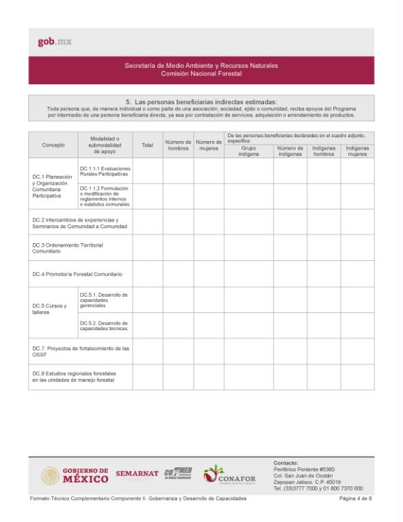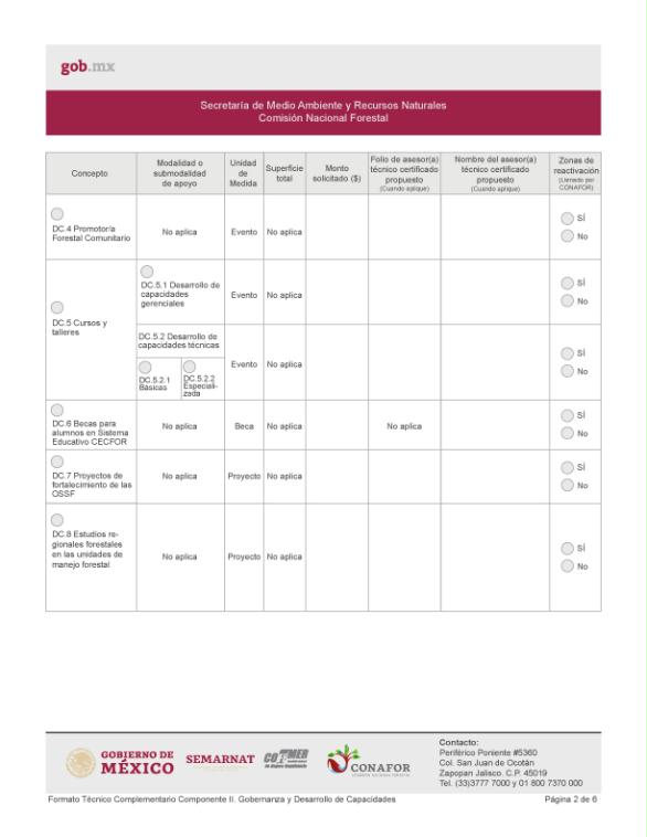 | DC.4 Promotor/a forestal comunitario | Única | 120,000 | II, III y IV | 1 | No aplica | No aplica |